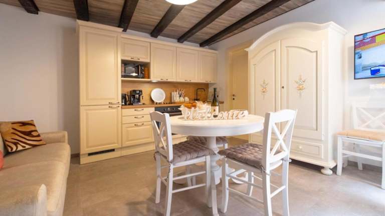 Die Wohneinheiten sind mit einer voll ausgestatteten Küche, einem Esstisch, einem Flachbild-TV mit Satellitenkanälen sowie einem eigenen Badezimmer mit Bidet und kostenlosen Pflegeprodukten ausgestattet. Zudem gibt es einen Kühlschrank, einen Geschirrspüler, einen Ofen, eine Kaffeemaschine sowie einen Wasserkocher.