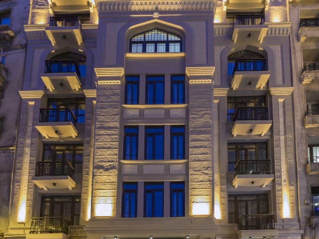 Das Vardar Palace Hotel liegt im Herzen von Istanbul, nur 300 Meter vom Taksim-Platz entfernt. Die Istiklal Caddesi mit zahlreichen Restaurants, Cafés, Bars, Geschäften und Kunstgalerien befindet sich in einer Distanz von 500 Metern. Der Dolmabahçe-Palast ist in 8 Gehminuten erreichbar, während das Stadion Vodafone Arena nach 0,7 Kilometern und verschiedene Einkaufszentren wie die Cevahir Mall (2,5 km), das Zorlu Center Mall (4,5 km) und die Istinye Park Mall (7 km) mit dem Velo oder zu Fuss erreichbar sind. Der Flughafen Istanbul ist 32 Kilometer entfernt.
