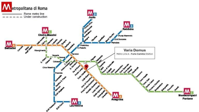 Die Unterkunft Varia Domus liegt in Rom, 800 m vom U-Bahnhof Ponte Lungo und 2,1 km vom U-Bahnhof San Giovanni entfernt. Sie befindet sich in der Nähe von verschiedenen Sehenswürdigkeiten wie Porta Maggiore und ist ebenfalls in der Nähe des Flughafens Rom-Ciampino, der sich 11 km entfernt befindet.