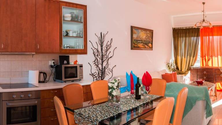 Die Unterkunft Vasiliki Residence, Theseus Village, Heraklion bietet Übernachtungsmöglichkeiten in einer Ferienwohnung mit einem saisonalen Aussenpool und einem eigenen Strandbereich. Es gibt eine Terrasse sowie kostenloses Wifi. Die Ferienwohnung verfügt über 2 Schlafzimmer, ein Wohnzimmer und eine voll ausgestattete Küche. Ein Kinderspielplatz ist vor Ort vorhanden.