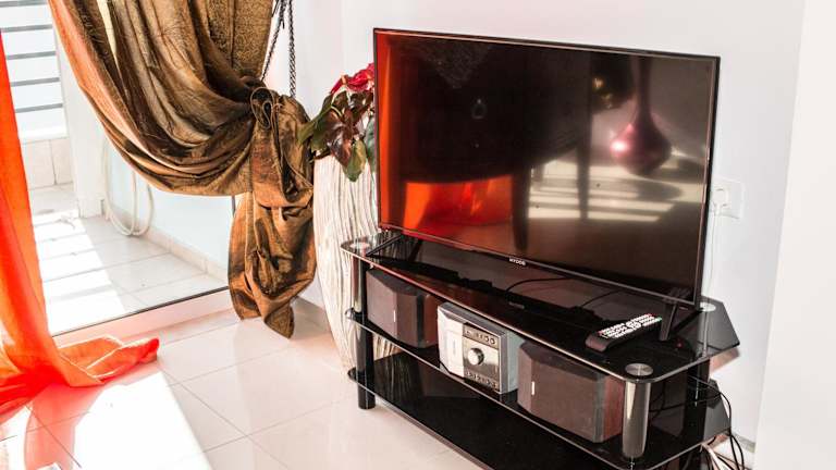 Die Ferienwohnung besteht aus zwei Schlafzimmern, einem Wohnzimmer und einer voll ausgestatteten Küche mit Kühlschrank und Wasserkocher. Zudem gibt es ein Badezimmer mit Dusche und Haartrockner. Handtücher und Bettwäsche werden bereitgestellt. Die Ferienwohnung ist klimatisiert.