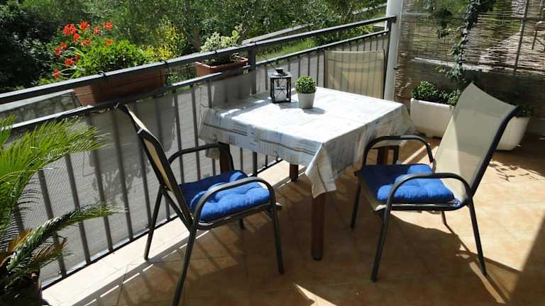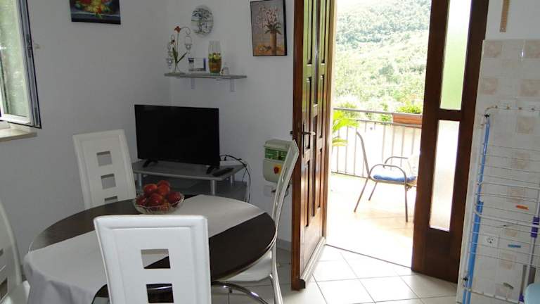 Die Ferienwohnung verfügt über ein Schlafzimmer, ein Wohnzimmer sowie ein Badezimmer mit Bidet und Badewanne. Zur Ausstattung gehören ein Satelliten Flachbild-TV und eine gut ausgestattete Küche. Handtücher und Bettwäsche werden bereitgestellt. Die Unterkunft ist durch ihre Terrasse und den Meerblick besonders hervorzuheben.