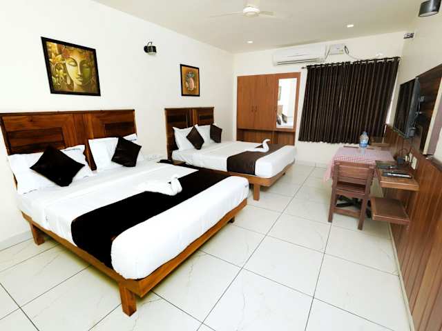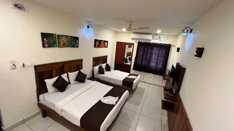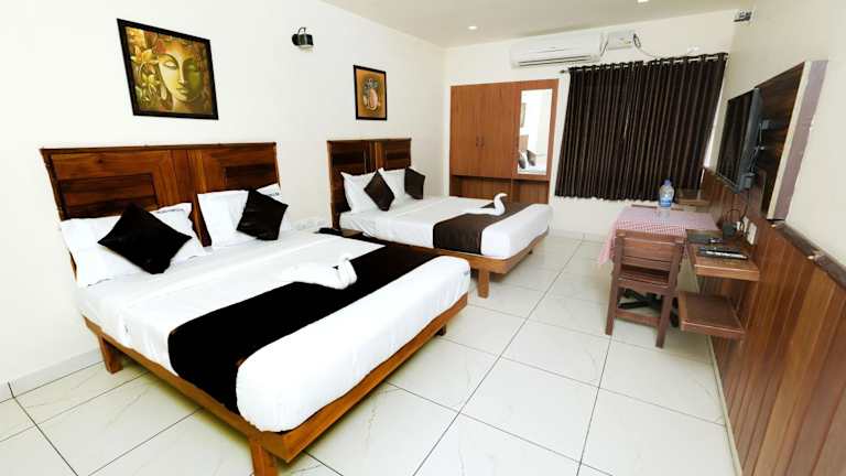 In der Unterkunft Velan Temple View ist jedes Zimmer ausgestattet mit einem Schreibtisch, einem Flachbild-TV, einem eigenen Badezimmer sowie einem Sitzbereich. Bettwäsche und Handtücher sind vorhanden.