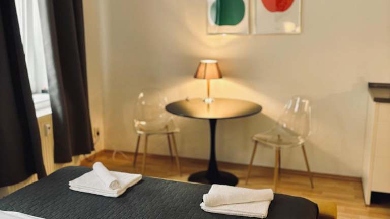Die Ferienwohnung umfasst ein Schlafzimmer sowie eine voll ausgestattete Küche mit Kühlschrank und Ofen. Zudem ist ein Badezimmer mit Dusche und kostenlosen Pflegeprodukten vorhanden. Handtücher und Bettwäsche werden bereitgestellt. Allergikerfreundliche Zimmer sind ebenfalls verfügbar.