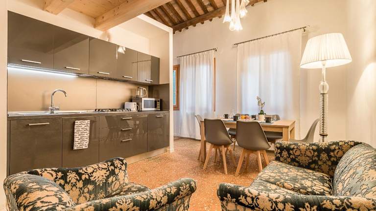 VENETIAN NEW STYLE @ CA' D'ORO bietet eine moderne Unterkunft mit kostenlosem Wifi. Die Wohneinheiten sind klimatisiert und verfügen über eine voll ausgestattete Küche mit einem Esstisch sowie einen Flachbild-TV mit Kabelkanälen. Jedes der Räume hat ein eigenes Badezimmer mit einem Bidet, kostenlosen Pflegeprodukten und einem Haartrockner. Sitzmöglichkeiten und Essbereiche runden die Ausstattung ab.