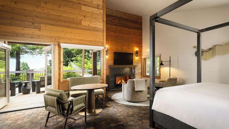 Die Unterkunft bietet elegantes Design und gut ausgestattete Zimmer. Zu den Zimmern gehören ein Fensterplatz, ein privater Balkon oder eine Terrasse mit Blick auf den Wald, das Meer, die Wiese oder den Canyon. Ausgestattet sind sie mit einem Flachbild-TV, einer Kaffeemaschine, einer Minibar und WLAN, das ohne Gebühr zur Verfügung steht. Jedes eigene Badezimmer hat eine ebenerdige Dusche und eine Badewanne sowie weiche Bademäntel. Einige Einheiten bieten zudem einen Whirlpool oder einen Kamin.