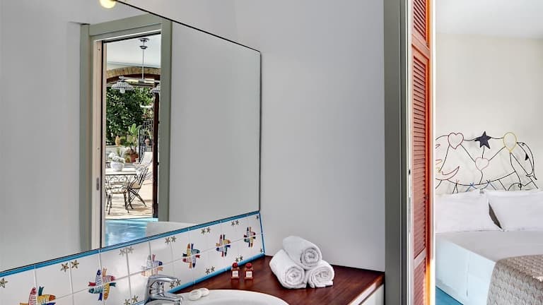 Die Unterkunft GOCCE VILLAS - Vera ed il Vervece On the Sea hat einen Balkon und bietet eine komfortable Ferienwohnung mit einem Schlafzimmer. Gästen stehen Annehmlichkeiten wie Klimaanlage, Heizung und Nichtraucherbereiche zur Verfügung.