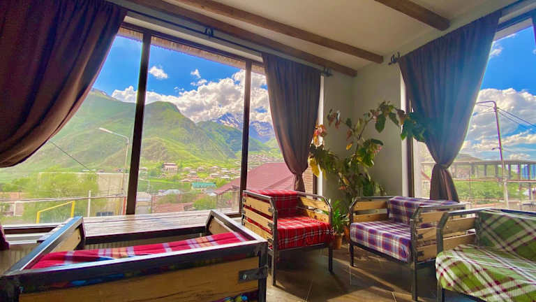 Die Unterkunft Veranda Guesthouse befindet sich in Kazbegi, 47 km vom Republik-Stadion Spartak entfernt. Die Umgebung zeichnet sich durch eine beeindruckende Berglandschaft aus, die zu Erkundungen einlädt.