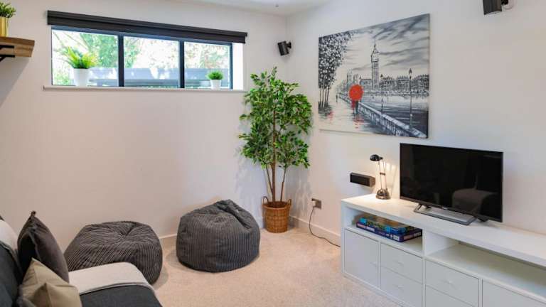 Das Ferienhaus umfasst fünf Schlafzimmer, ein Wohnzimmer und eine voll ausgestattete Küche mit Kühlschrank und Kaffeemaschine. Es gibt drei Badezimmer, die mit einer Dusche und einem Whirlpool ausgestattet sind. Zur Unterhaltung stehen ein Flachbild-TV mit Satellitenkanälen, eine Xbox 360 Spielekonsole, ein CD-Player und eine iPod-Dockingstation zur Verfügung.