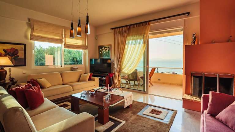 Verga Sunset Villa - Ilia Seascape Private Retreat bietet einen herrlichen Meerblick und diverse Annehmlichkeiten, die Ihren Aufenthalt besonders angenehm gestalten. Die klimatisierte Unterkunft umfasst einen Garten sowie eine Veranda oder ein Patio. Kostenloses Wifi steht in der gesamten Unterkunft zur Verfügung.