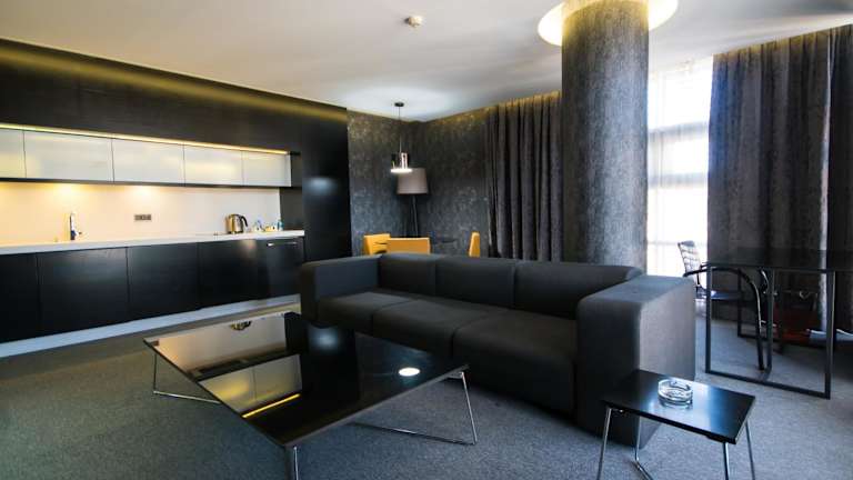 Die Zimmer sind mit Klimaanlage, Heizung und einer Kochnische ausgestattet, die einen Kühlschrank, eine Mikrowelle sowie eine Tee-/Kaffeemaschine umfasst. Zur weiteren Ausstattung gehören ein Flachbild-TV mit Satellitenkanälen, ein Safe, kostenloses Wifi und ein Badezimmer mit Dusche und Haartrockner. Einige Zimmer bieten zudem Stadtblick. Die Unterkunft bietet zudem Familien- und Nichtraucherzimmer sowie rollstuhlgerechte Zimmer mit barrierefreier Dusche.