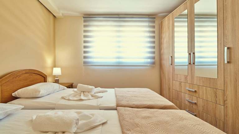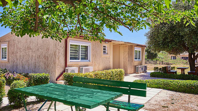 Die klimatisierten Zimmer bieten ein angenehmes Raumklima durch Heizung und Klimaanlage. Sie sind mit einem Doppelbett, einem Sofabett und einer kleinen Küchenzeile ausgestattet. Die Zimmer verfügen über Balkon oder Terrasse mit Bergblick. Zu den weiteren Annehmlichkeiten zählen ein TV, ein Radio, ein Schreibtisch, ein Safe und kostenfreies Wifi. Die Badezimmer sind mit Dusche und Badewanne, Haartrockner sowie Kosmetikartikeln ausgestattet. Einige Zimmer sind rollstuhlgerecht und verfügen über barrierefreie Badezimmer.