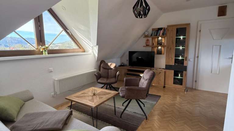 Die Ferienwohnung umfasst ein Schlafzimmer, ein Wohnzimmer und eine gut ausgestattete Küchenzeile mit Kühlschrank und Geschirrspüler. Ein Flachbild-TV gehört ebenfalls zur Ausstattung. Die Unterkunft bietet ein Badezimmer mit Dusche sowie eine Terrasse mit Bergblick. Handtücher und Bettwäsche werden bereitgestellt.