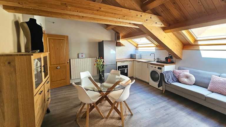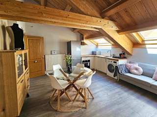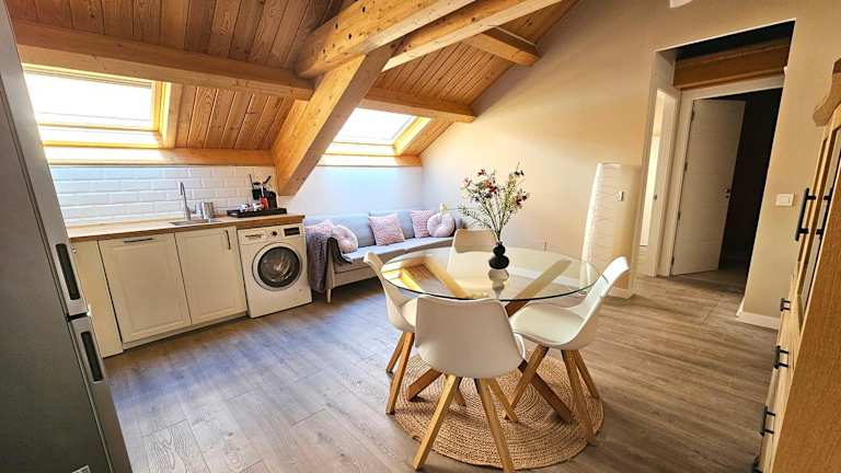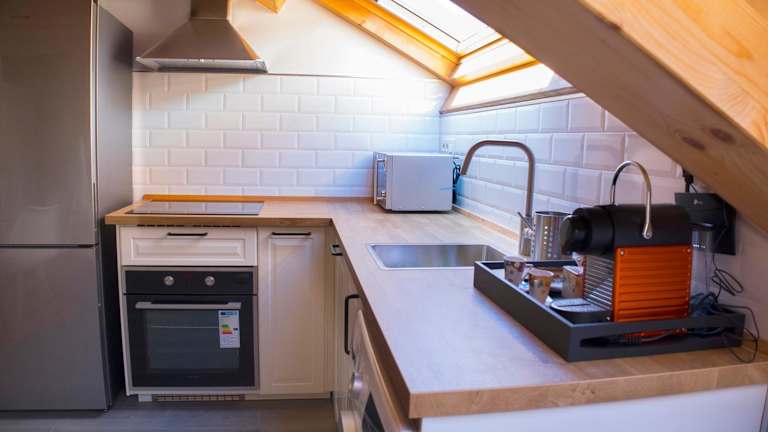 Die Ferienwohnung umfasst 1 Schlafzimmer, eine voll ausgestattete Küche mit Kühlschrank und Geschirrspüler sowie ein Badezimmer mit Dusche, Haartrockner und Waschmaschine. Handtücher und Bettwäsche werden zur Verfügung gestellt. Die Zimmer sind schallisoliert und durch einen Zugang mit Schlüssel gesichert.