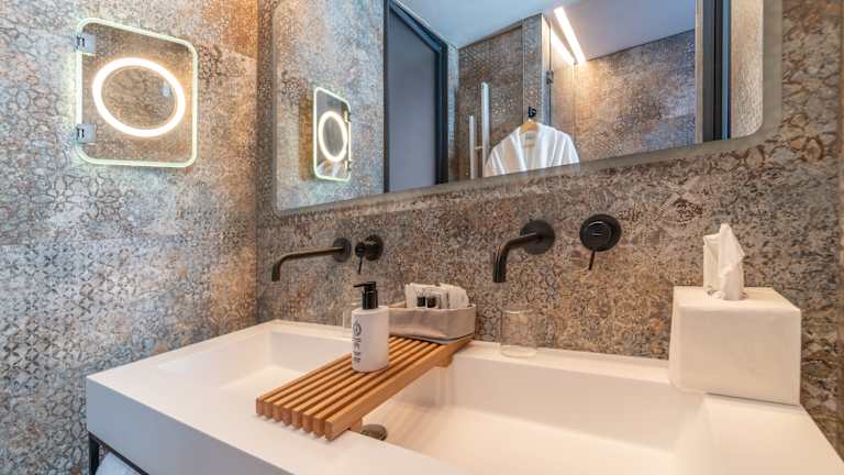 Die Zimmer sind mit einem Kingsize-Bett oder einem Sofabett ausgestattet und bieten eine Reihe von Annehmlichkeiten, einschliesslich Klimaanlage, kostenloses Wifi, Minibar und einen Flachbild-TV. Familien- und Nichtraucherzimmer sind ebenfalls verfügbar.