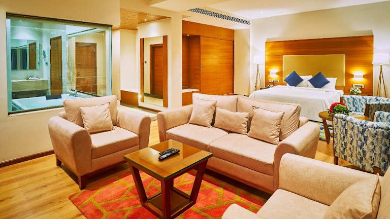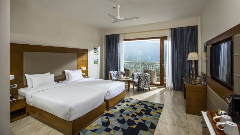 Die Zimmer sind mit einem Queensize-Bett oder einem Kingsize-Bett ausgestattet und verfügen über Annehmlichkeiten wie Klimaanlage, einen Flachbild-TV und einen Safe. Einige Zimmer bieten einen Balkon mit Bergblick. Zustellbetten sind auf Anfrage erhältlich. Es stehen Familien- und Nichtraucherzimmer zur Verfügung.