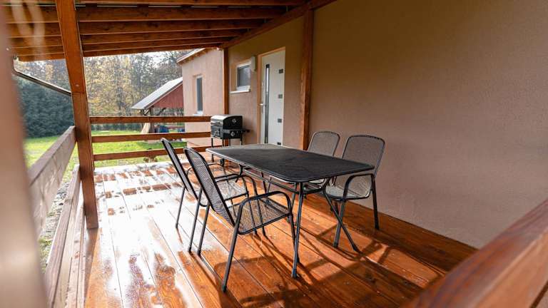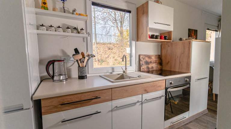 Das Ferienhaus umfasst 1 Schlafzimmer, ein Wohnzimmer mit einem Flachbild-TV und eine gut ausgestattete Küche mit Kühlschrank und Mikrowelle. Zudem ist ein Badezimmer mit Dusche vorhanden. Handtücher und Bettwäsche werden bereitgestellt.