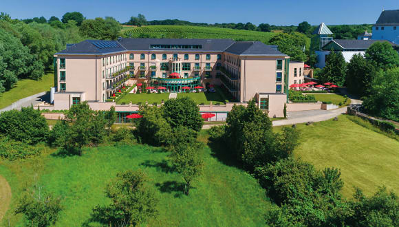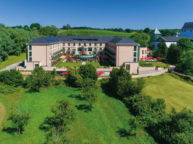 Inmitten des ältesten deutschen Weinbaugebietes, wo Deutschland, Frankreich und Luxemburg aufeinandertreffen, begrüßen wir Sie herzlich im Victor’s Residenz-Hotel Schloss Berg. Wir laden Sie dazu ein, all die großen und kleinen Schätze dieser aufregenden Destination und der so vielfältigen Kulturregion im Herzen Europas mit allen Sinnen zu erleben. Wo einst Römer und Ritter residierten, ist heute der Genuss zu Hause. Lassen Sie sich von dem malerischen Ensemble aus römisch inspirierter Villa, romantischem Renaissance-Schloss und mittelalterlicher Scheune, umgeben von sanft ansteigenden Weinbergen, verzaubern. Und spüren Sie den einzigartigen Wohlfühl-Komfort, der Sie beim Betreten unseres Dolce-Vita-Hideaways sofort umgibt. Begeben Sie sich auf eine spannende Reise quer durch den kulinarischen Kosmos unseres mondänen Domizils. In der Geschmackswelt von Schloss Berg reicht die Vielfalt der tausend Aromen von italienischen Köstlichkeiten über herzhafte Landhauskreationen bis hin zu einer unvergleichbaren Melange aus klassisch französischer und japanischer Kulinarik, die Genießer aus nah und fern fasziniert. Hotelausstattung: Zimmer und Suiten zur Einzel- und Doppelbelegung, größtenteils mit Balkon/Terrasse, behindertengerechte Zimmer, Restaurant Bacchus, Landgasthaus Die Scheune, Victor's Fine Dining by Christian Bau, Bars, Sonnenterrassen, Wellness-Bereich mit Pool, Victor's Spa, Parkplätze Besonderheiten: - kostenfreies Telefonieren in alle Fest- und Handynetze vom Zimmeranschluss - weltweit - im gesamten Hotel steht Ihnen kostenlos schnelles WLAN zur Verfügung - 4 Veranstaltungsräume (68 bis 378 m², für bis zu 300 Personen) mit Tageslicht und moderner Tagungstechnik - Wellness-Bereich mit Schwimmbad, Whirlpool, Sauna, Dampfbad - exklusive Verwöhn-und Beauty-Programme im Victor’s Spa - Fahrradverleih (kostenfrei) - 100 Außenparkplätze Das Victor's Residenz-Hotel Schloss Berg ist mit dem GreenSign Nachhaltigkeitszertifikat ausgezeichnet.