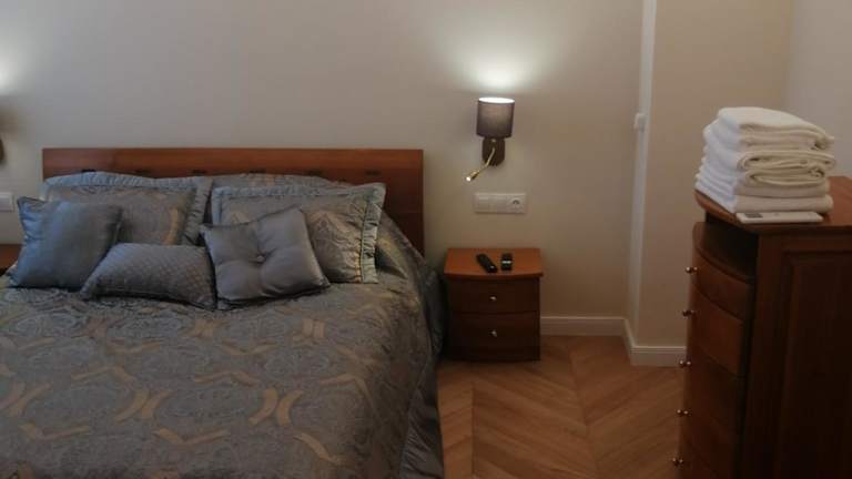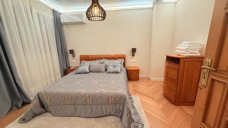 Die Ferienwohnung besteht aus zwei separaten Schlafzimmern, einem Badezimmer und einem Wohnzimmer. Zur Ausstattung gehören Bettwäsche, Handtücher und Wäsche, die nach Richtlinien der örtlichen Behörden gewaschen werden. WLAN ist in der gesamten Unterkunft verfügbar, und die Klimaanlage sorgt für Bequemlichkeit.