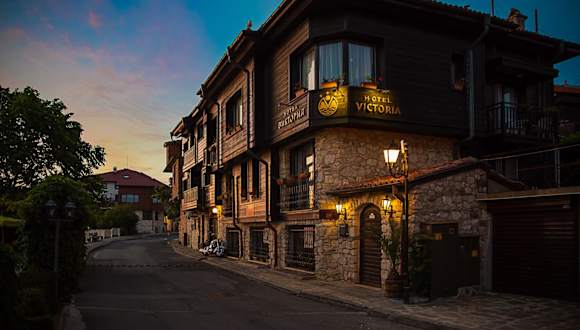 Das Victoria Hotel befindet sich auf einer Anhöhe am Rand der Altstadt von Nessebar mit herrlichem Blick auf den Sonnenstrand, Sveti Vlas und Elenite. Der Strand ist nur 200 Meter entfernt und das Stadtzentrum ist in etwa 3 km erreichbar. Gute Anbindungen an die öffentlichen Verkehrsmittel sind vorhanden, da diese nur etwa 150 Meter vom Hotel entfernt liegen.