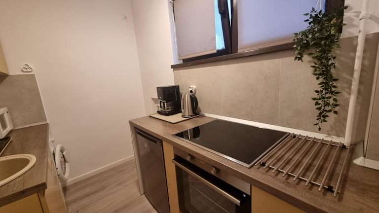 Die Ferienwohnung besteht aus einem Schlafzimmer, einem Wohnzimmer und einer voll ausgestatteten Küche mit Kühlschrank und Wasserkocher. Ein Badezimmer mit Dusche und kostenlosen Pflegeprodukten steht ebenfalls zur Verfügung. Handtücher und Bettwäsche werden bereitgestellt. Die Unterkunft bietet WLAN, Klimaanlage und verfügt über Nichtraucherzimmer.