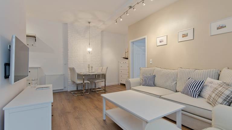 Die Ferienwohnung ist mit einem Schlafzimmer, einem Wohnzimmer, einem Essbereich sowie einer Küchenzeile mit Kühlschrank ausgestattet. Ein Kabel-Flachbild-TV sorgt für Unterhaltung. Die Unterkunft umfasst zudem klimatisierte Räumlichkeiten.