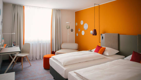 Die historische Fachwerkstadt Limburg an der Lahn ist berühmt für ihren Dom und die Bischofsresidenz. Für das Vienna House Easy Limburg sprechen die zentrale Lage zur Altstadt, die großzügigen Zimmer und vor allem die herzlichen Mitarbeiter. Die Messestädte Frankfurt und Köln sind einfach und schnell zu erreichen. Auch Urlaubern wird viel geboten: allein der Lahntalrad- und -wanderweg ist vom Hotel aus einladend nah. In den 99 Doppelzimmern des Vienna Hotel Easy Limburg schlafen Sie in Queensize- oder Twin-Betten. Ideal für den Business-Gast wird Komfort geboten, und so wenig Schnickschnack wie möglich. Daher gehört kostenfreies Highspeed WLAN zur Standardausstattung aller Zimmer. Mit einem leckeren Frühstück starten Sie gestärkt in Ihren Tag oder Ihre Meetings.