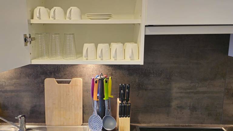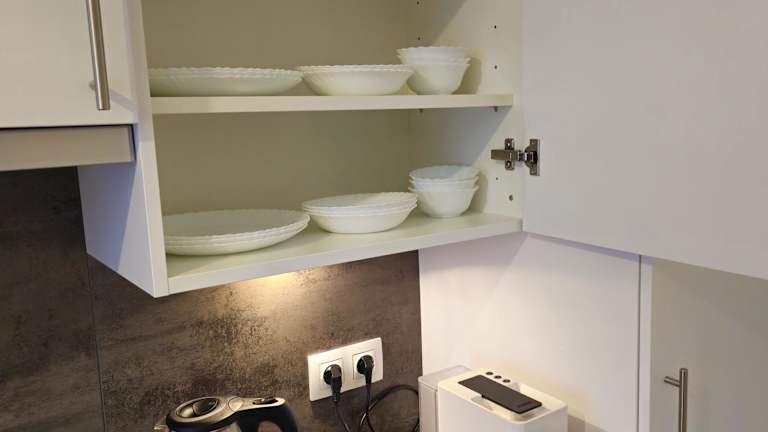 Die Ferienwohnung bietet eine voll ausgestattete Küche mit Kühlschrank und Kaffeemaschine, jedoch keine spezifischen Informationen über Verpflegungsmöglichkeiten.