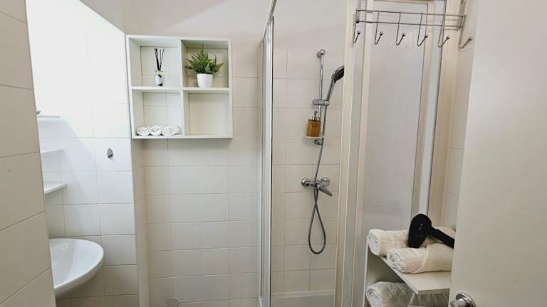 Die Wohnung besteht aus zwei Schlafzimmern, einem Wohnzimmer und einem Badezimmer mit Dusche. Handtücher und Bettwäsche werden bereitgestellt. Gästen steht zudem kostenloses Wifi zur Verfügung.