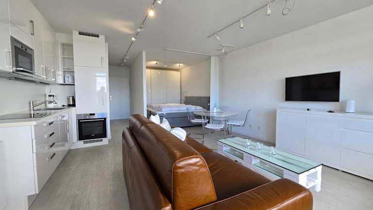 Die Wohnung ist mit einem Wohnzimmer sowie einer voll ausgestatteten Küche mit Kühlschrank und Geschirrspüler ausgestattet. Zudem gibt es einen TV und einen Balkon, der eine angenehme Aussicht bietet. Die Unterkunft bietet Nichtraucherzimmer und ist barrierefrei gestaltet. Haustiere sind in dieser Wohnung nicht erlaubt.