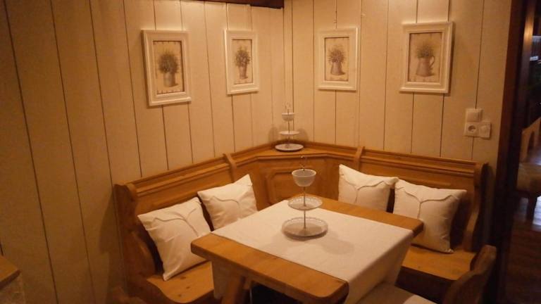 Die Ferienwohnung Vier Jahreszeiten Idyll bietet eine Veranda, einen Garten und kostenloses Wifi. Es werden keine Barzahlungen akzeptiert. Die Unterkunft ist rollstuhlgerecht und verfügt über einen Rollstuhl für Gäste. Der Check-in ist von 16:00 bis 20:00 Uhr möglich, während der Check-out von 07:00 bis 10:00 Uhr erfolgt. Für Gäste unter 18 Jahren ist der Aufenthalt nicht gestattet. Haustiere sind auf Anfrage erlaubt, können aber mit zusätzlichen Gebühren verbunden sein.