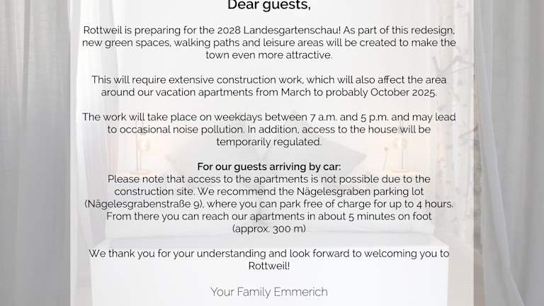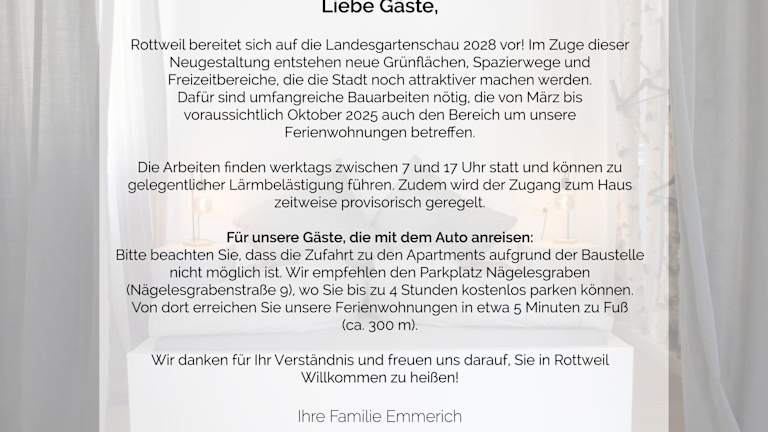 Die Unterkunft Vier Sind Hier Apartments befindet sich in Rottweil und bietet einen schönen Stadtblick. In der Umgebung gibt es zahlreiche Möglichkeiten für Aktivitäten wie Wandern, Skifahren und Angeln. Die Unterkunft liegt 30 km von der Neuen Tonhalle und 33 km vom Kloster Alpirsbach entfernt. Die Triberger Wasserfälle sind 40 km entfernt und der Flughafen Stuttgart ist 95 km von der Unterkunft entfernt.