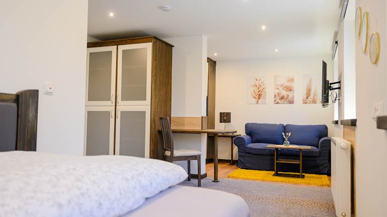 In ruhiger, naturnaher Lage erwarten Sie vier freundlich gestaltete und helle Gästewohnungen mit einer Größe von ca. 20 bis 45 m². Zur Auswahl stehen zwei komfortable 2-Zimmer-Wohnungen sowie zwei gemütliche 1-Zimmer-Wohnungen – ideal für unterschiedliche Bedürfnisse, ob allein, zu zweit oder für einen längeren Aufenthalt. - Wohnbereich mit komfortabler Einrichtung - Küchenzeile mit 2-Platten-Kochfeld, Kühlschrank, Mikrowelle, Wasserkocher und Kaffeemaschine - Badezimmer mit Dusche und WC - WLAN und Smart-TV inklusive - Bettwäsche, Handtücher und Seife werden gestellt