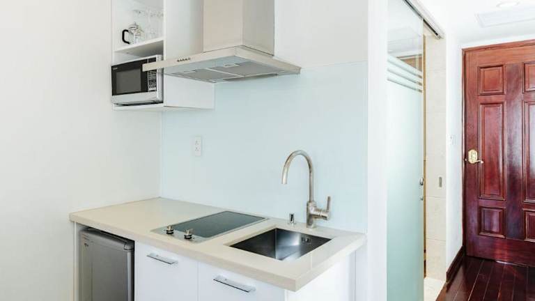 Die klimatisierten Zimmer sind ausgestattet mit einem Schreibtisch, einem Sitzbereich, einem Wasserkocher sowie einem eigenen Badezimmer mit einem Bidet und kostenlosen Pflegeprodukten. Einige Zimmer verfügen zusätzlich über eine Küche mit Mikrowelle. Jedes Zimmer ist mit Bettwäsche und Handtüchern ausgestattet.