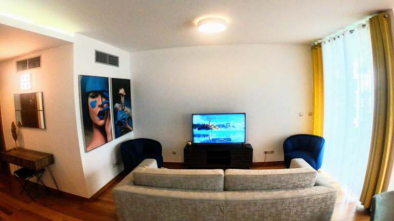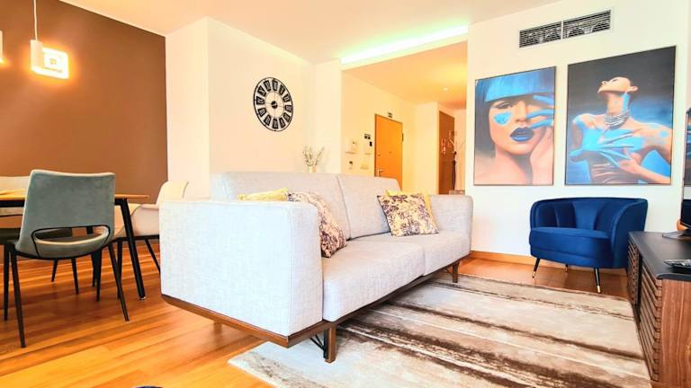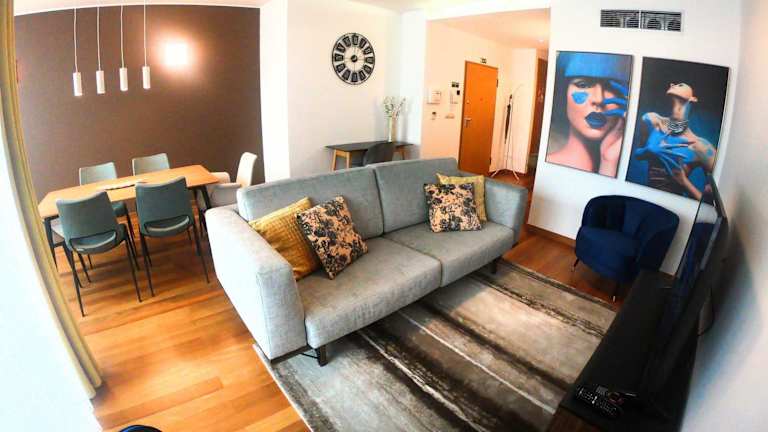 Die Ferienwohnung besteht aus 2 Schlafzimmern, einem Wohnzimmer und einer voll ausgestatteten Küche mit Kühlschrank und Wasserkocher. Zudem sind 2 Badezimmer mit Bidet und Dusche vorhanden. Handtücher und Bettwäsche werden bereitgestellt und die Unterkunft verfügt über Klimaanlage.