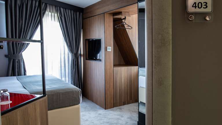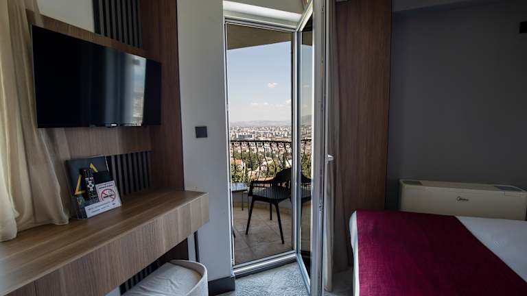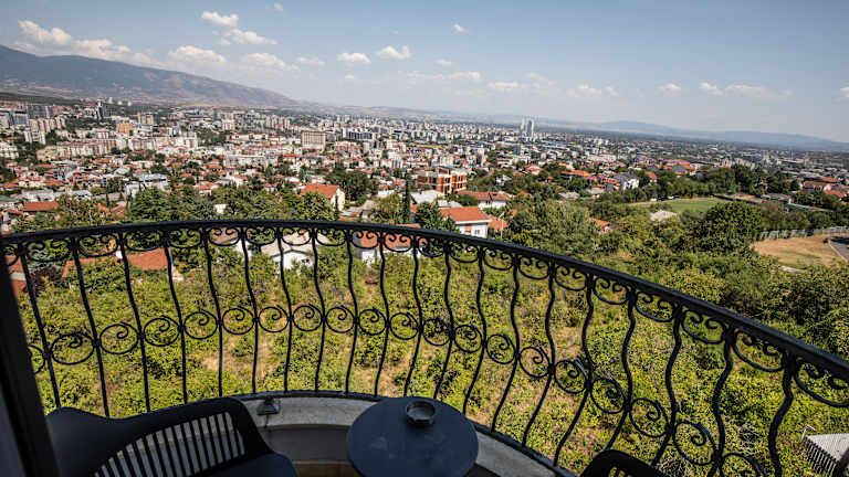 View Inn Boutique Hotel offers 15 rooms with a 24 hour luxury service including assistance on getting around the Skopje land marks, travel arrangements, food and beverage service, maid service once a day & in house laundry. Guests can relax, have breakfast with a variety of Macedonian, Mediterranean and international delicacies, during the lunch and dinner hours at the View Inn Restaurant & Cocktail Bar, among st the finest dining experiences in Skopje. During sunset you are invited to participate at a ceremonial wine tasting overlooking the city of Skopje form Hotels Romantic Balcony.