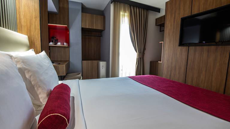 Our Hotel View Inn Boutique Hotel in Skopje is delited to provide, Hospitality services, warm atmosphere and sense of romance uniquely combined in natural environment. Amazing inspiring views, perfectly aligned white Almont trees, provide the magnificent natural beauty for this lovely Boutique Hotel that watch down the city of Skopje. A Boutique Hotel in a unique location Hotel View Inn is located 2km of the historic center of Skopje in an extremely characteristic, quite and lively area. On entering this charming hotel in Skopje, you will immediately sense its special intimate atmosphere that makes you feel like being in your own home. Each detail has been passionately chosen and each room deserves a visit. The special charm and the cosy mood of View Inn will make open the most beautiful door to hospitality.