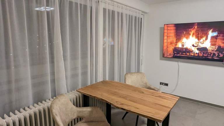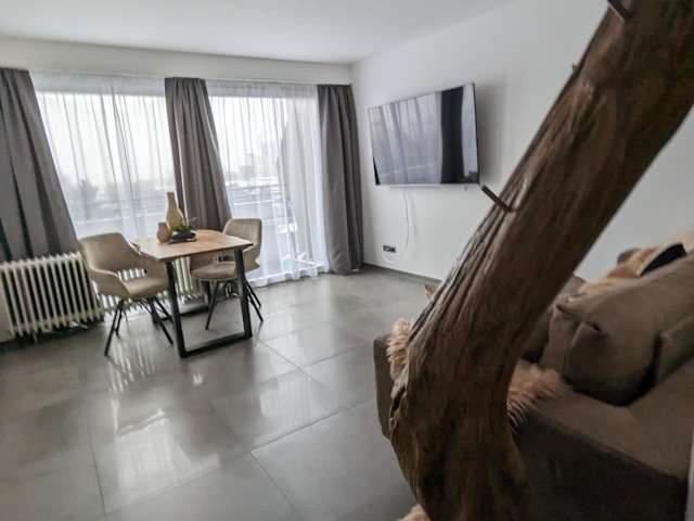 Die Ferienwohnung besteht aus einem Schlafzimmer, einem Wohnzimmer und einem Badezimmer mit einer Dusche und einem Haartrockner. Handtücher und Bettwäsche werden bereitgestellt, um den Gästen eine angenehme Bequemlichkeit zu bieten.