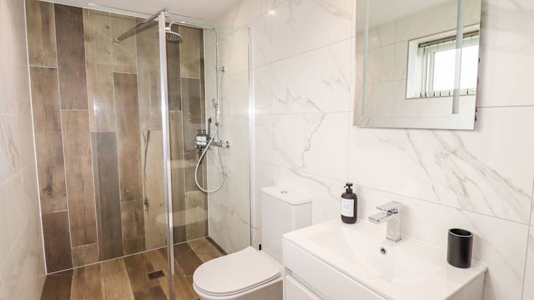Das Ferienhaus verfügt über ein Schlafzimmer, einen TV, eine gut ausgestattete Küche mit Kühlschrank und Geschirrspüler sowie ein Badezimmer mit Dusche.