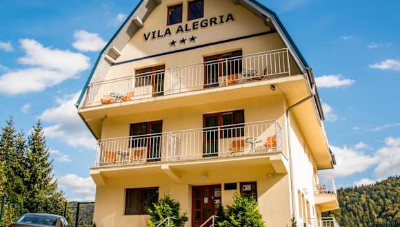 Die Unterkunft Vila Alegria befindet sich in Buşteni, weniger als 9 km von Schloss Peles und dem Gedenkhaus von George Enescu entfernt. Die Umgebung bietet zahlreiche Freizeitmöglichkeiten. Der Parc Aventura Braşov und Dino Parc liegen jeweils 32 km entfernt. Der nächste Flughafen ist der Flughafen Bukarest Henri Coandă, welcher 117 km von der Unterkunft entfernt ist.