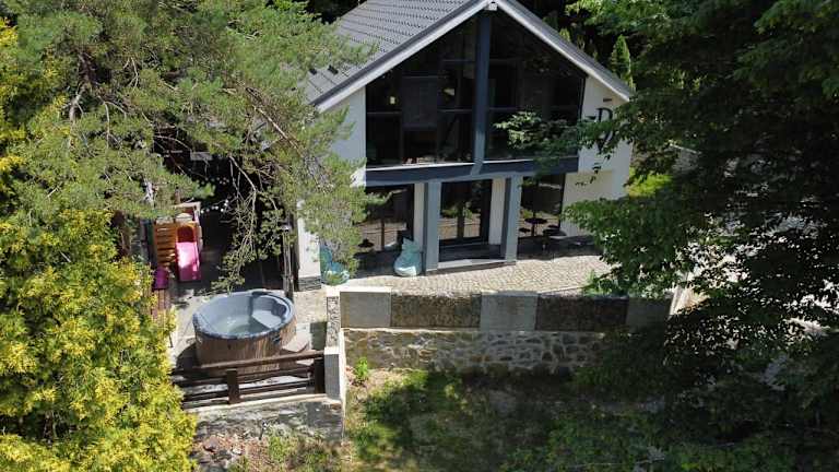 Die Villa bietet einen Kinderspielplatz und einen Garten, in dem Sie sich entspannen können. In der Umgebung gibt es auch Möglichkeiten zum Wandern und Skifahren.