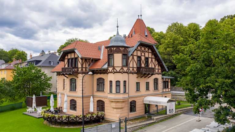 Die Vila ELIS in Jeseník bietet eine komfortable Unterkunft mit kostenfreiem WLAN und Parkplätzen. Der Garten und der Kinderspielplatz sorgen für Unterhaltung und Entspannung. Die Zimmer sind gut ausgestattet und bieten einen schönen Blick auf die Berge. Genießen Sie Ihr Frühstück im Restaurant des Hotels und entspannen Sie in der Infrarotsauna. Die Lage der Unterkunft ist ideal für Aktivitäten wie Skifahren und der Bahnhof Jeseník ist nur wenige Schritte entfernt.