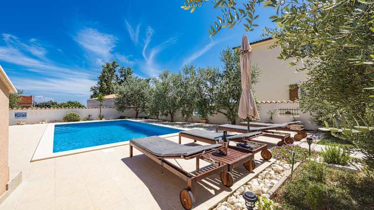 Die Villa besteht aus 4 Schlafzimmern, einem Wohnzimmer und einer voll ausgestatteten Küche, die über einen Kühlschrank und eine Kaffeemaschine verfügt. Es stehen 4 Badezimmer mit Bidet und Dusche zur Verfügung. Handtücher und Bettwäsche werden bereitgestellt und die Villa ist klimatisiert.