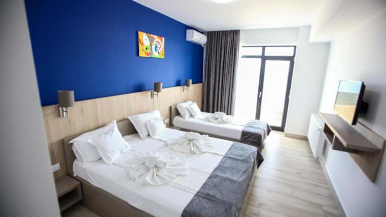 Die Zimmer sind mit einem eigenen Badezimmer ausgestattet, wobei bestimmte Zimmer auch über einen Balkon verfügen oder Meerblick bieten. Es steht eine Anzahl von Familienzimmern zur Verfügung und die Hotelzimmer sind modern gestaltet, um den Gästen eine angenehme Bequemlichkeit zu bieten.