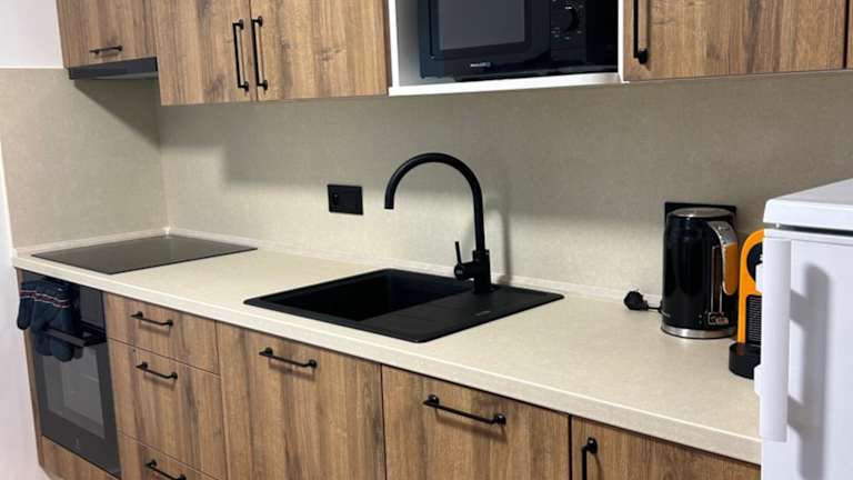 In der Unterkunft stehen geräumige Zimmer zur Verfügung, die über eine gut ausgestattete Küche mit Kühlschrank, Geschirrspüler, Ofen und Kaffeemaschine verfügen.