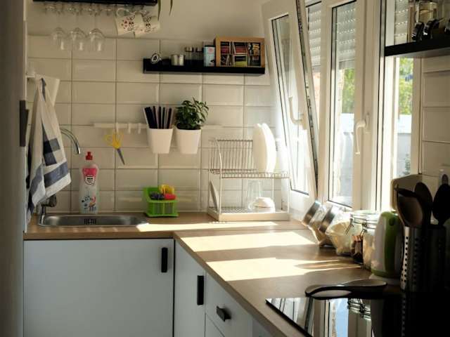 Das Appartement besteht aus einem Schlafzimmer, einem Wohnzimmer und einer voll ausgestatteten Küche mit Kühlschrank und Wasserkocher. Zudem gibt es ein Badezimmer mit Dusche und kostenlosen Pflegeprodukten. Handtücher und Bettwäsche werden zur Verfügung gestellt.