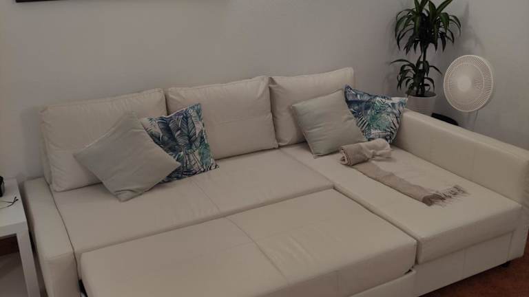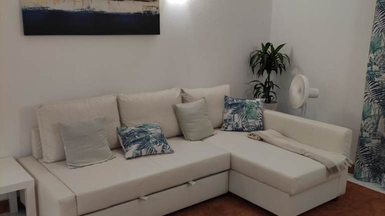 Die Ferienwohnung besteht aus einem Schlafzimmer, einem Wohnzimmer und einer voll ausgestatteten Küche, die mit Kühlschrank und Kaffeemaschine ausgestattet ist. Des Weiteren gibt es ein Badezimmer mit Bidet und Dusche. Handtücher und Bettwäsche werden zur Verfügung gestellt.