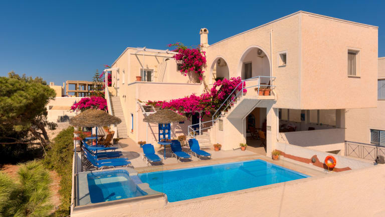 Die Villa Aegeon befindet sich im traditionellen Dorf Megalochori. Der Strand Vlychada ist 2,5 km entfernt und der Strand Perivolos liegt 3,5 km von der Unterkunft entfernt. Die lebendige Stadt Fira ist nach 6 km erreichbar, während der Flughafen Santorini 7 km entfernt ist. Transfers vom und zum Flughafen oder Hafen sind auf Anfrage verfügbar.
