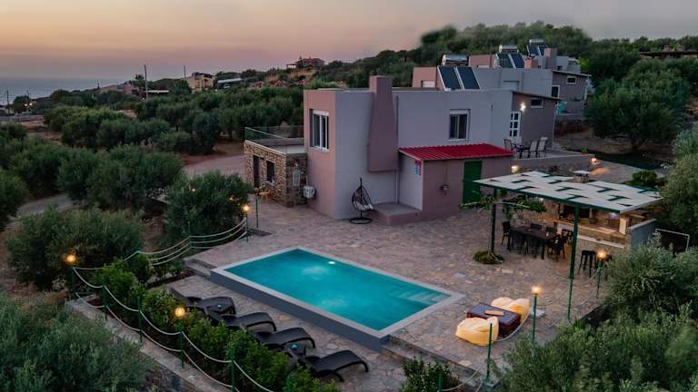 Die klimatisierte Villa Aktis verfügt über 3 Schlafzimmer, ein geräumiges Wohnzimmer und eine voll ausgestattete Küche mit Kühlschrank und Kaffeemaschine. Es gibt auch 2 Badezimmer mit Dusche und kostenlosen Pflegeprodukten. Handtücher und Bettwäsche werden in der Villa bereitgestellt. Ein Highlight der Villa ist der private Pool, den Sie während Ihres Aufenthalts genießen können.