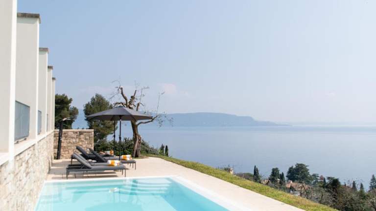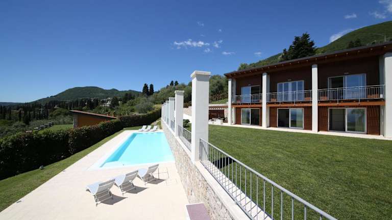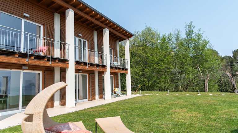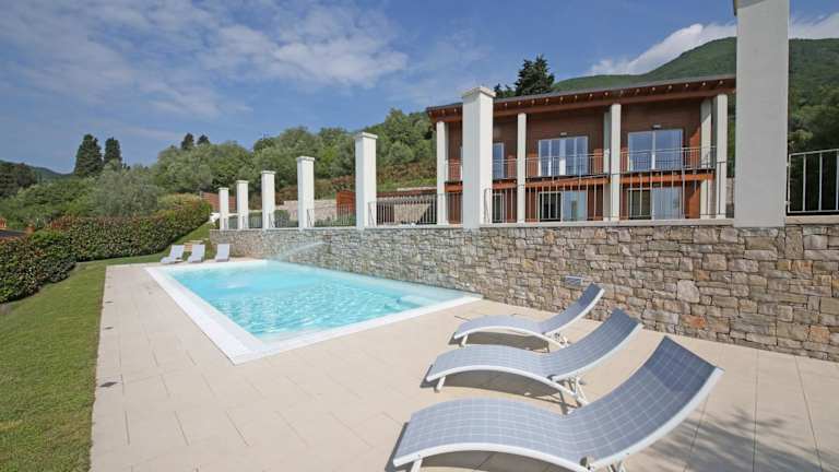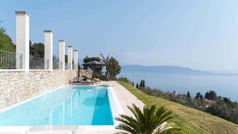 Die Villa Albachiara befindet sich in Gardone Riviera und bietet eine malerische Aussicht auf den See. Die Umgebung zeichnet sich durch eine grüne und ruhige Landschaf aus, ideal für entspannte Ferien.